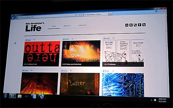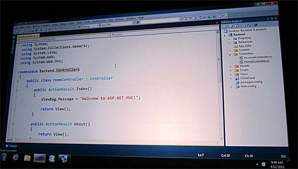 Показали живые демонстрации применения различных фреймворков ASP.NET. Вот, например, разработка сайтов с MVC3. Выглядело эффектно - десяток строчек кода, создан сайт с довольно продвинутыми инструментами.
