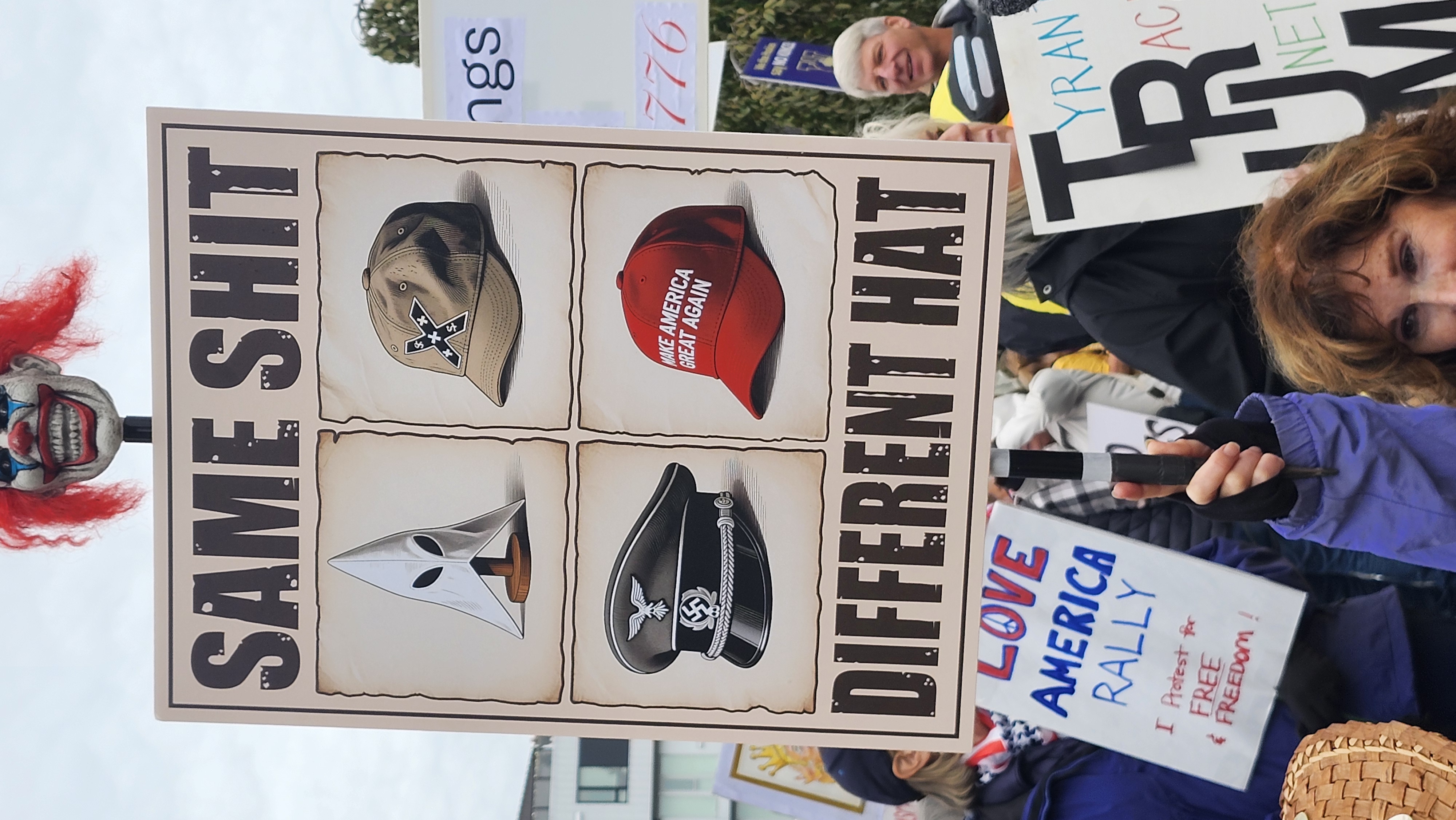 Массимо Масколи, 68-летний пенсионер, инженер-электронщик, житель Нью-Джерси, выросший в Италии, сказал, что он протестует, потому что обеспокоен тем, что США идут по тому же пути, что и его родная страна в прошлом веке.