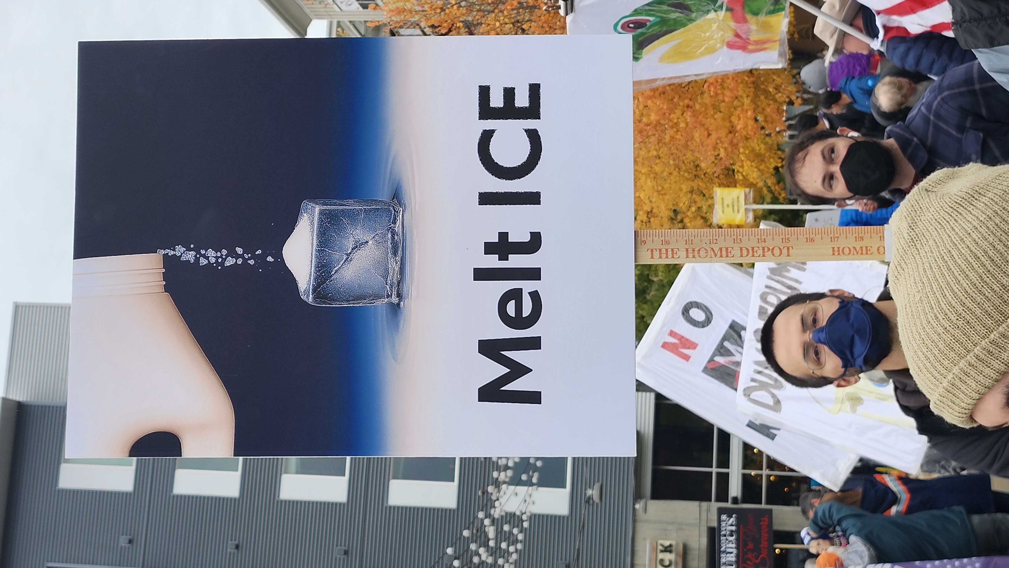 Подобные сцены наблюдались в Торонто, где демонстранты возле консульства США размахивали плакатами с надписями «Руки прочь от Канады».