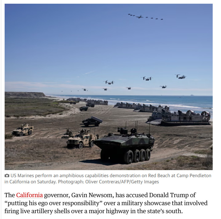 ... это когда Хегсет тренируетcя захватывать Калифорнию и стреляет из пушек над I-5 дорогой.