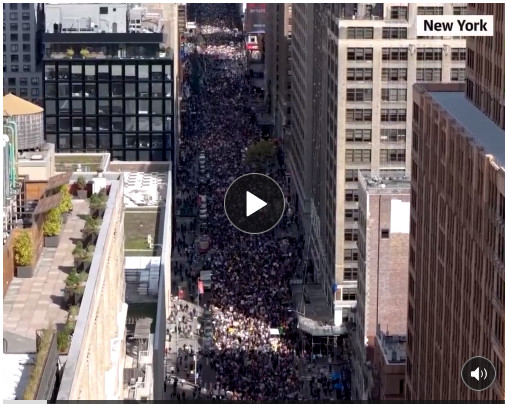 Сенатор Крис Мерфи поделился кадрами огромного скопления людей в своем родном штате Коннектикут: «Захватывает дух. Именно поэтому сегодняшний день, вероятно, войдет в историю как самый масштабный день мирных протестов за 250-летнюю историю нашей страны».