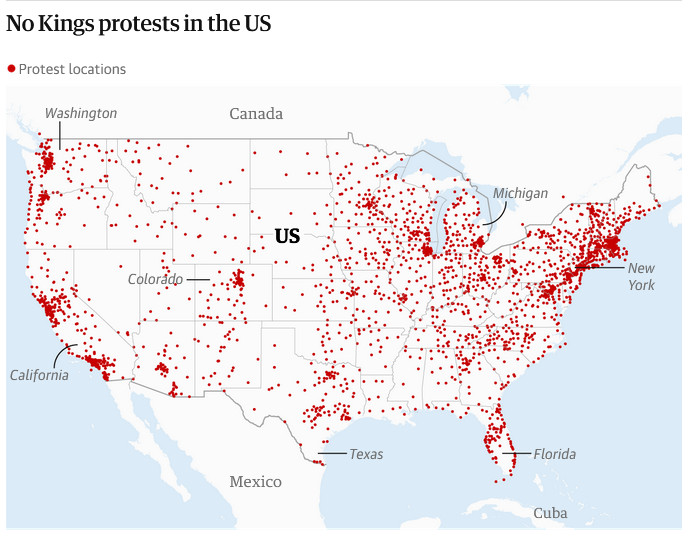 Огромные толпы людей приняли участие в протестах «Нет королям» против политики президента Дональда Трампа в городах по всей территории США, включая Нью-Йорк, Вашингтон, Чикаго, Майами и Лос-Анджелес.