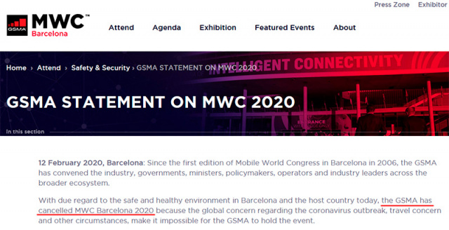 Отменили к гребеням MWC 2020. Причем буквально еще позавчера выпускали сообщения о том, что, несмотря на отказ некоторых участников, MWC все-таки состоится. Теперь объявили, что не состоится. В Испании никакого коронавируса нет, но MWC 2020 он уже победил.