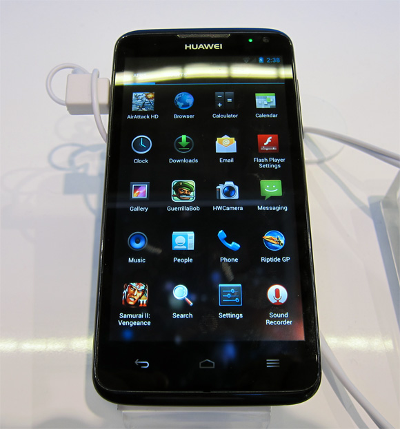 Также на стенде представили бюджетную модель смартфона Huawei Ascend G300, который будет продаваться за 200 с чем-то евро.