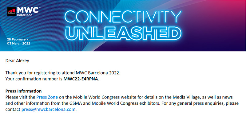 Ну что, на Mobile World Congress в этом году вроде попадаю - по крайней мере на денек скатаюсь, а может, и на два. Подтверждение аккредитации прислали.