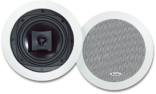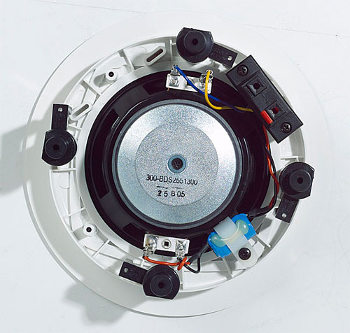 В качестве тыловых колонок (с их размещением всегда куча проблем) были выбраны встраиваемые в потолок Boston Acoustics DSi255 (ссылка ведет на сайт производителя). Выглядит динамик следующим образом: