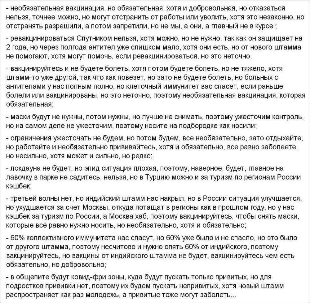 Сейчас топят за вакцины, как раньше топили за маски или дезинфекцию рук. Вакцина сейчас — религия, нельзя говорить, что у неё есть недостатки, уволят. Хоть какая-то статистика накопится хорошо если через год, с масками вот все на своих местах так и остались. Точно можно сказать, что к мнению "во всём виноваты антимасочники" добавится "во всём виноваты антипрививочники" с точно такой же аргументаций — никого ни в чём не убеждающей.