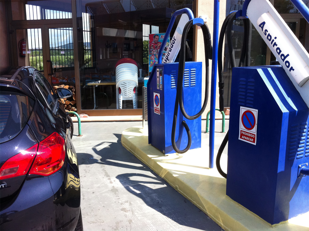 Если нужно пропылесосить салон (на море это всегда актуально, у меня в машине скопилась целая горка песка) - рядом специальные загончики со стационарными пылесосами. Стоят 1 евро 4,5 минуты или 2 евро - 9 минут. Тоже очень удобно.