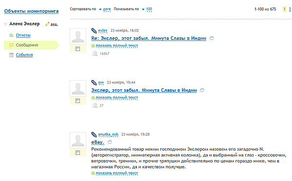 При этом есть продвинутая система фильтрации и вы можете комбинировать фильтры так, как вам угодно - например, по датам, платформам (тем же блогам), авторам сообщений, их возрасту, полу и так далее.