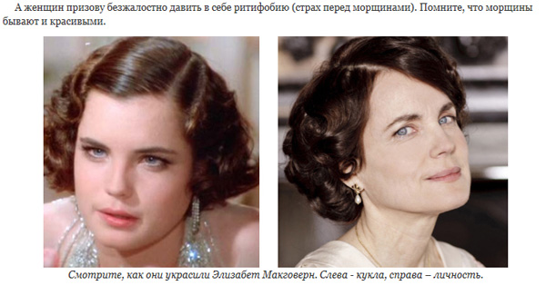 ...Да и личностью Элизабет Макговерн сделали не морщины, а ум и жизненый опыт. "После того - не значит, что вследствие того".
