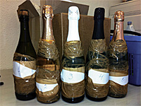 Идея статьи следующая. Корреспондент "МК" отправляется в магазин и покупает пять бутылок игристого вина, среди которого, конечно, шампанского как такового нет как класса. Ну, хоть игристое, а не "Яблочное особое" и не "Печень монаха" - уже хлеб. Бутыльцы там следующие, цитирую: