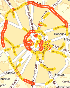Москва. 23 часа. Карта пробок: