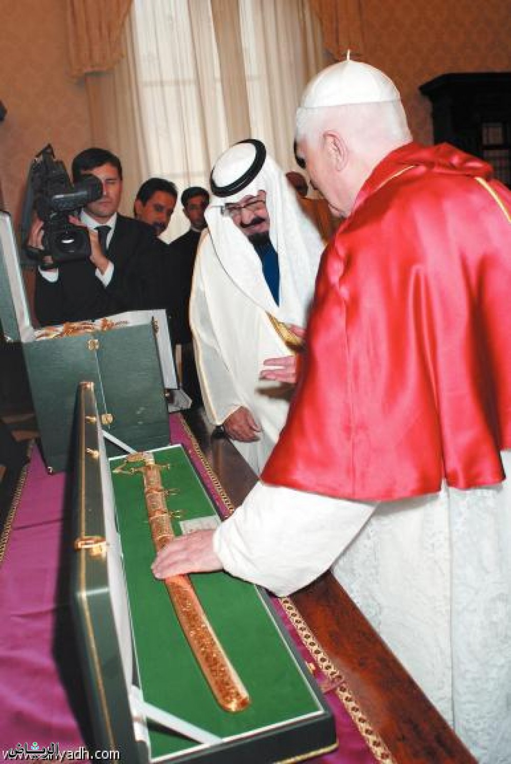 Беседа продолжалась около получаса, после чего глава Римско-католической церкви и король Саудовской Аравии обменялись подарками. Монарх преподнес понтифику золотой меч, декорированный драгоценными камнями, и барельеф из золота и серебра с изображением человека с верблюдом. Папа Римский подарил гравюру 1550 года с изображением Ватикана и золотую медаль понтификата.