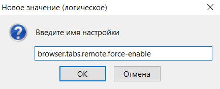 Там в поле настроек в любом месте нажать правую кнопку мыши и выбрать создать логическую переменную browser.tabs.remote.force-enable.