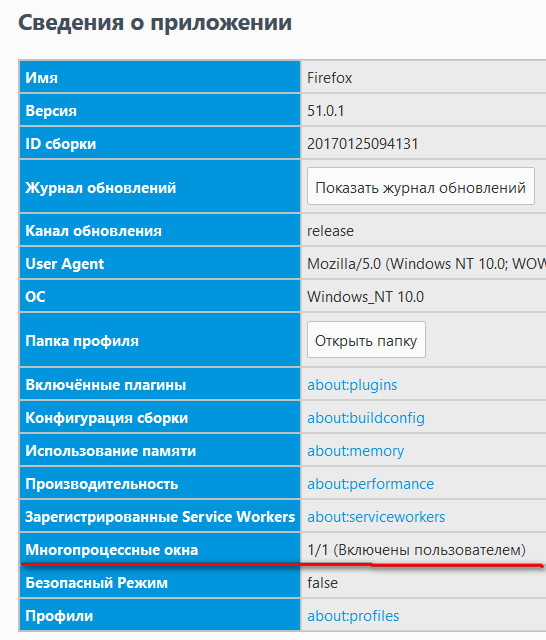 Как известно, начиная с 48-й версии Firefox поддерживает мультипроцессность (это разделение работы процессов для повышения оперативности, стабильности и безопасности; подробности можно почитать вот здесь). Этот режим был включен только для 1% пользователей - чтобы как следует все протестировать.