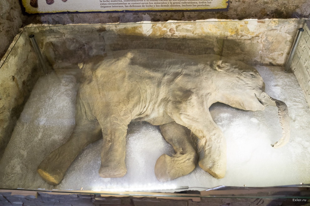 А это самый настоящий мамонтенок, сохранившийся в вечной мерзлоте.