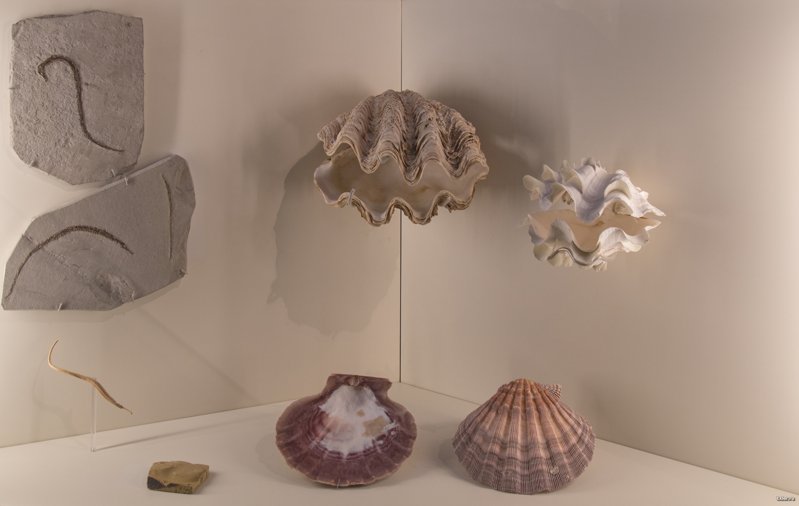 Еще коллекции. Интересно, кто жил вон в тех здоровенных раковинах слева?