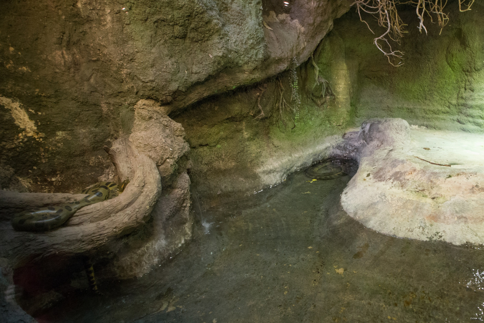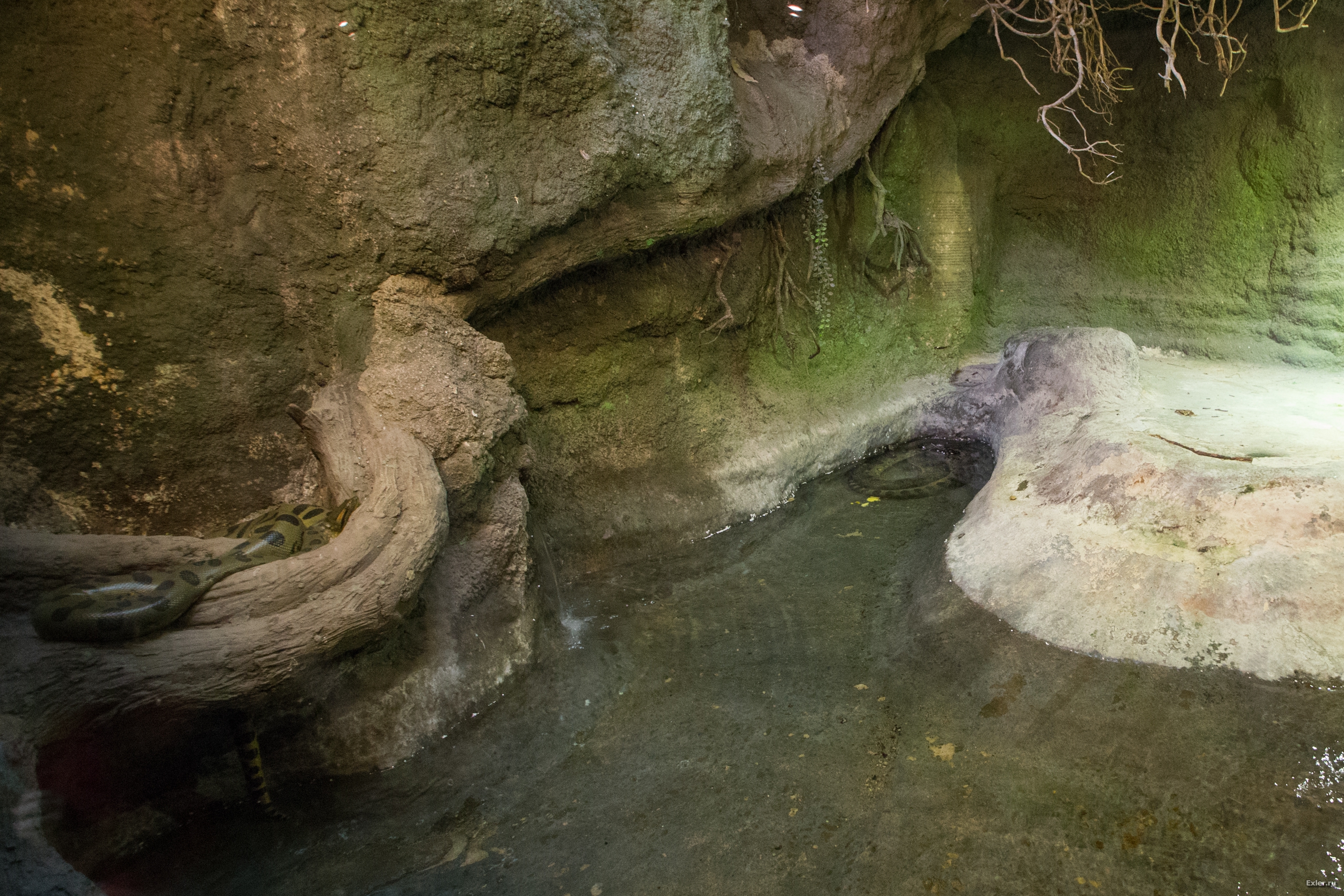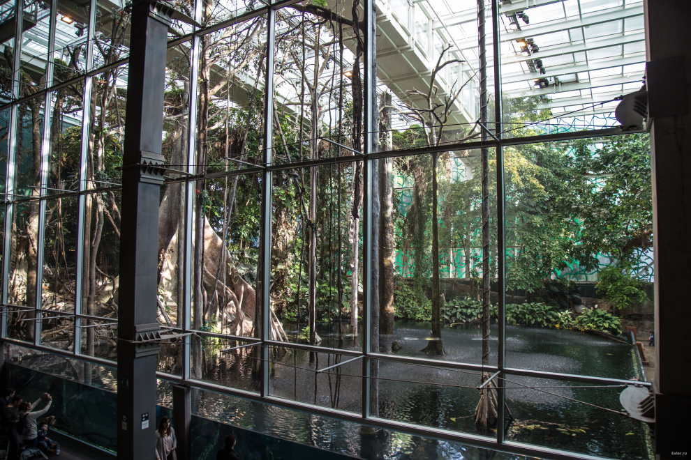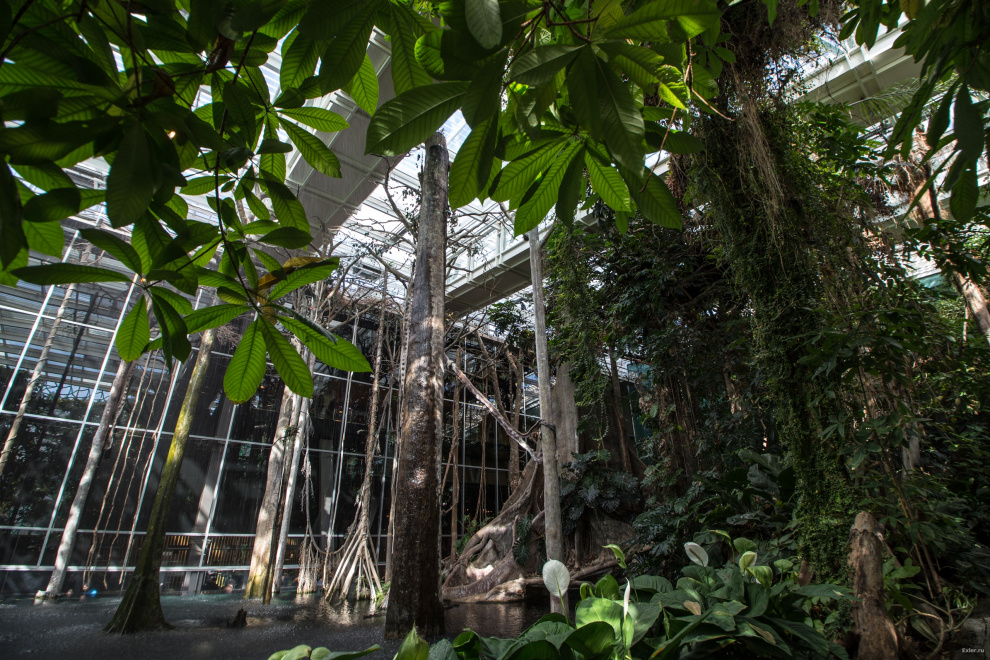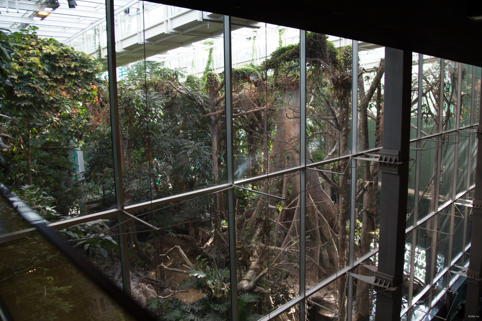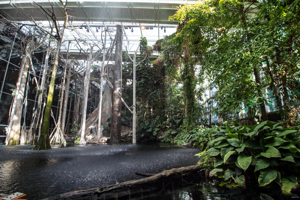 Ну и вот стенд во всей красе - джунгли Амазонки. Причем экосистема тут воспроизведена очень точно - климат, влажность 90%, каждые пятнадцать минут проходит дождь.