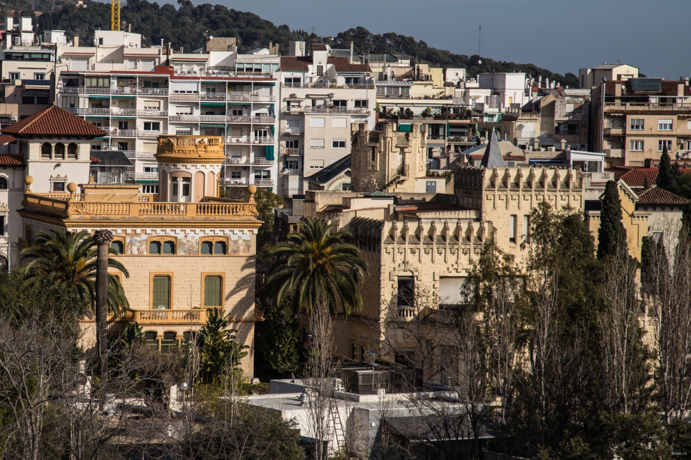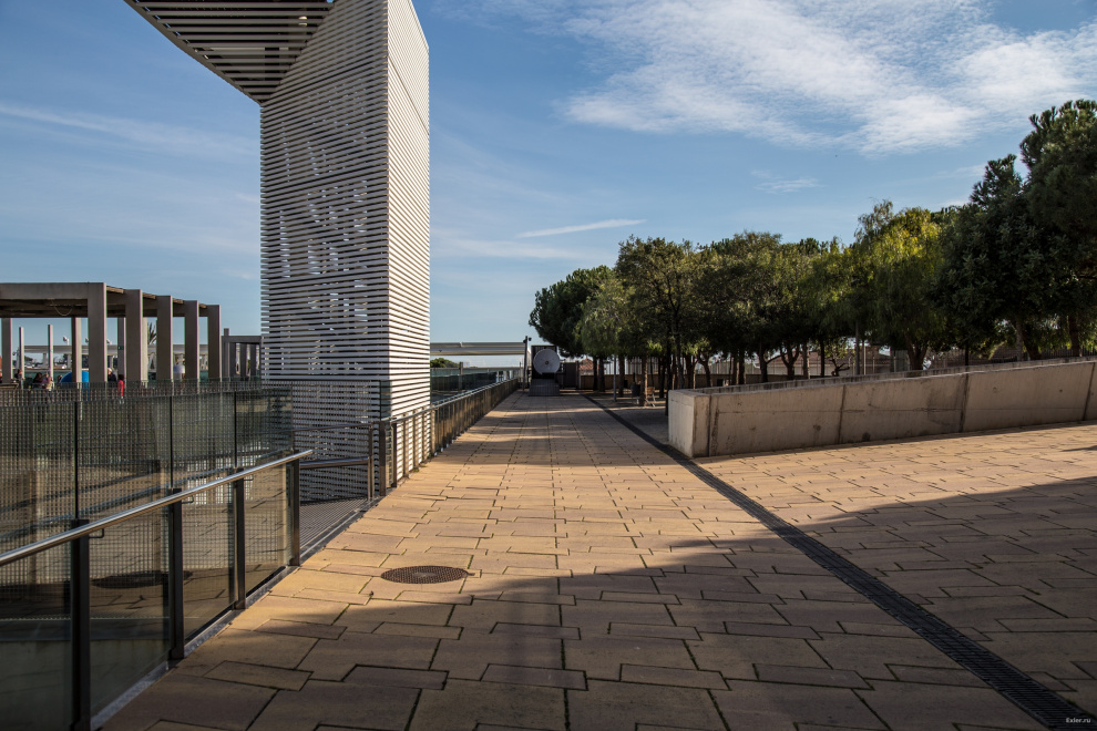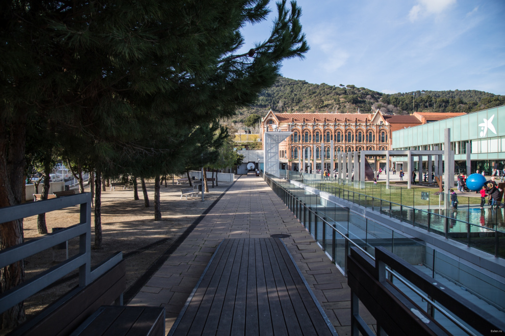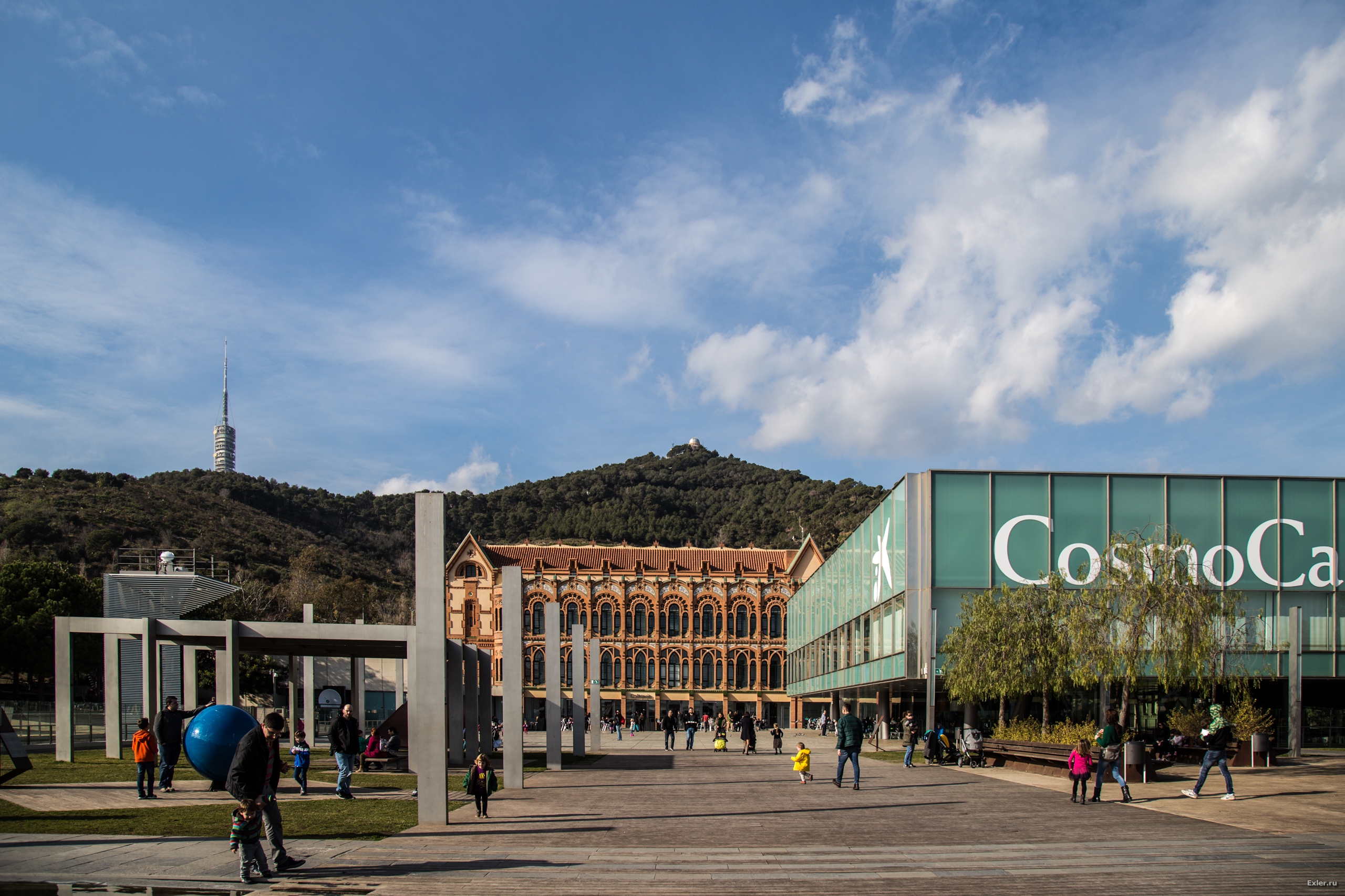 Площадь Науки во внутреннем дворе музея. Кстати, сзади правее расположена гора Тибидабо. А слева видна барселонская телебашня.