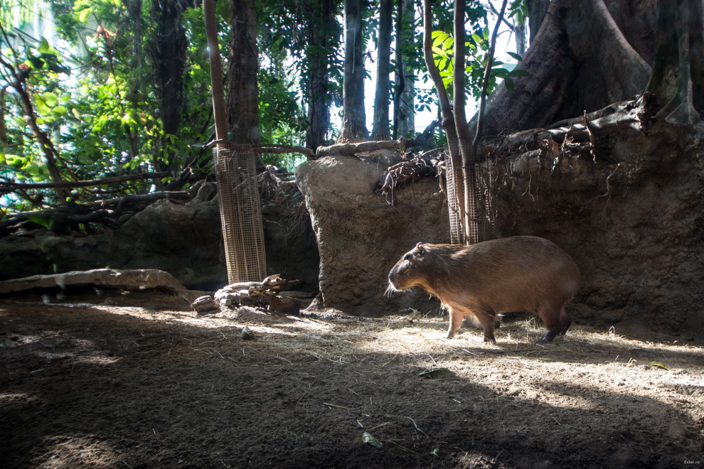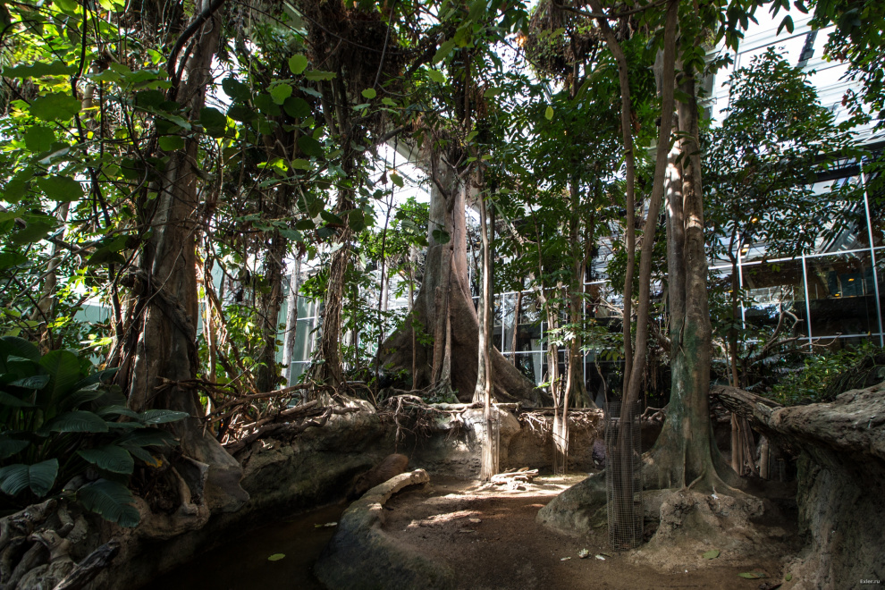 А теперь входим на самый знаменитый стенд - гектар тропического леса с животными и птицами.