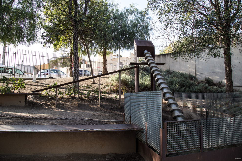 Alex Exler: Демонстрация работы винта Архимеда. Вращаешь здоровый круг (ребенок один не справится), он приводит в действие винт, тот подает наверх воду. Все наглядно.