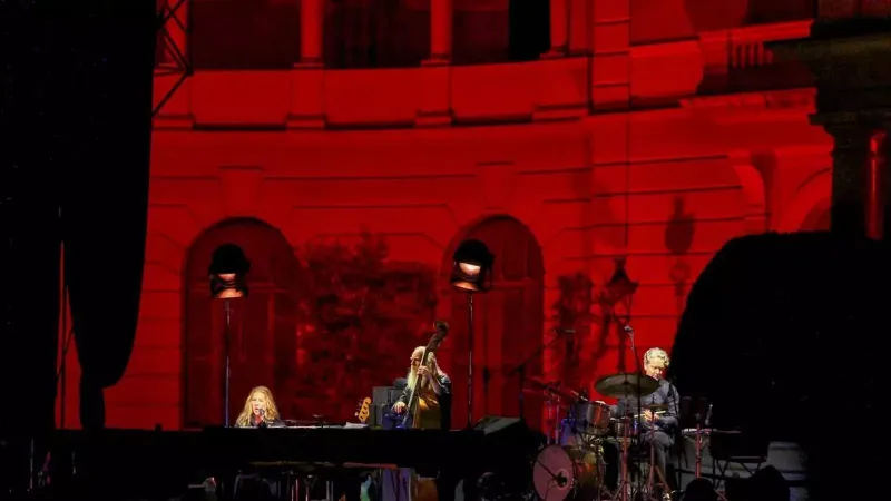 Дайана Кролл уже предупредила нас: никаких камер, никаких подсвеченных мобильников, никаких звуков, которые могли бы нарушить почти полную темноту. Возможно, канадская певица намеревалась превратить дворец Pedralbes в джаз-клуб поздней ночью с той интимностью, когда по бару разгуливают всего четыре кошки. Возможно, она хотела заглушить коллективную эйфорию, которую принудительно вызывают большие толпы. Как бы то ни было, концерт, который она дала в этот четверг на фестивале Les Nits в Барселоне, страдал от излишней темноты; от некоего отстраненного воздуха, который, хотя и укреплял ее образ богемной дивы, создавал странное разделение между певицей и аудиторией. Кролл было трудно подобрать достаточно сложный с вокальной точки зрения репертуар, так что в первой части концерта настоящими героями стали барабанщик Мэтт Чемберлен и, прежде всего, контрабасист Себастьян Стейнберг, два сопровождавших ее музыканта, обеспечившие свинг, которого так не хватало певице.