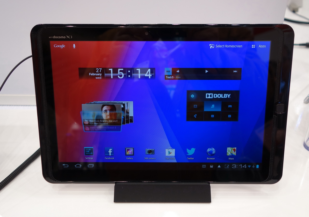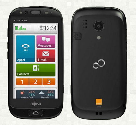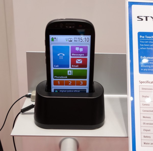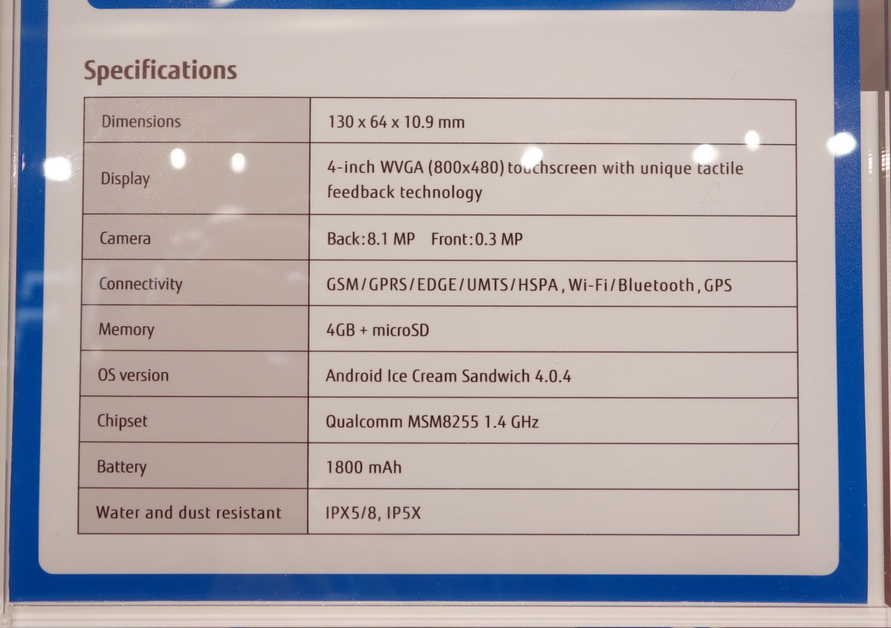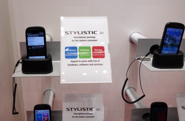 На стенде Fujitsu также показали совершенно инновационную разработку - специальный андроидный телефон для пожилых людей под названием Stylistic S01.