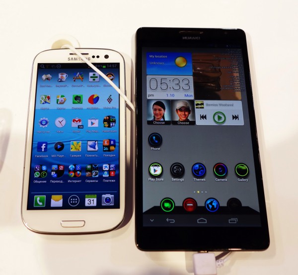 Удивляет фотка, где Ascend P2 рядом с Galaxy S3.