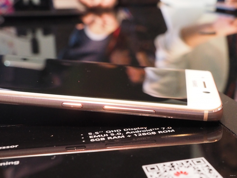 Huawei P10 (характеристики) я на стенде фотографировать не стал, так как он уже есть у меня на руках. Аппарат производит очень хорошее впечатление, изучаю, скоро будет обзор. Из явных нововведений - добавили возможность убрать экранные кнопки, а вместо них использовать сканер отпечатка и жесты на нем. Я переключил, но пока не приноровился, пока неудобно, жесты ловятся нечетко. Но еще посмотрю.