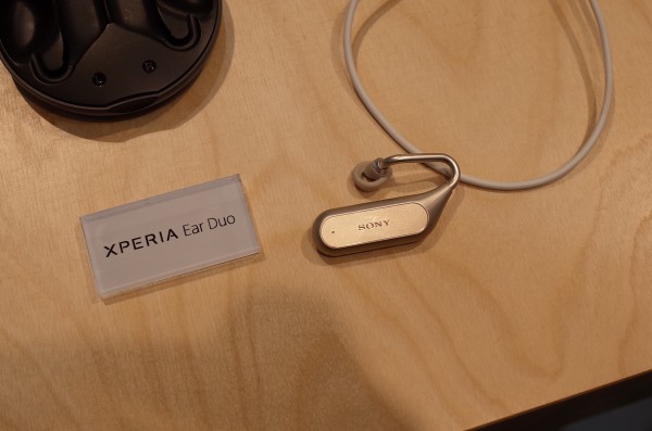 Новинка - беспроводные наушники Sony Xperia Ear Duo. Что-то подобное они уже показывали в виде концепта, но здесь тоже - серийный вариант, который скоро поступит в продажу. Главная "фишка" наушников - технология Dual Listening (двойное слушание), которая позволяет одновременно и слушать то, что воспроизводится в наушниках, но при этом также слышать все, что происходит вокруг.