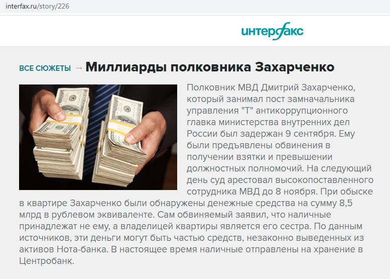 "...начальник следственного отдела по Тверскому району Москвы попался на взятке в 1,6 млрд рублей."
