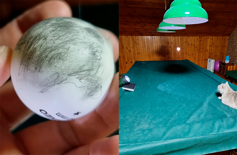Именно поэтому каляки-маляки превращаются в лунные моря, горы и кратеры. Сегодня я повторно сделал аналогичные фотки (шарик только не смог повесить так же, как было). Этот шарик сфотал со стороны этикетки и с раскрашенной стороны