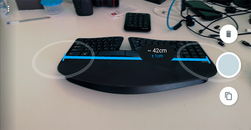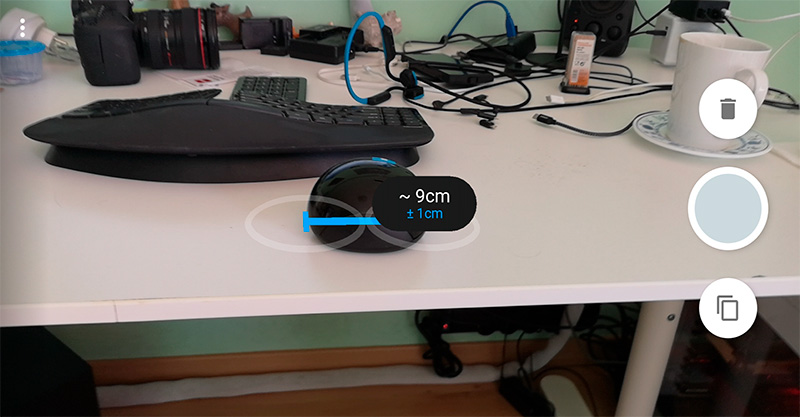 В комментах подсказали полезную программку. Оказывается, если ваш смартфон поддерживает технологию дополненной реальности ARCore, то на нем можно установить гугловскую же программку Measure - Quick Everyday Measurements, которая позволяет более или менее точно измерять длину и высоту различных предметов со смартфона. Вот список смартфонов, которые поддерживают ARCore.