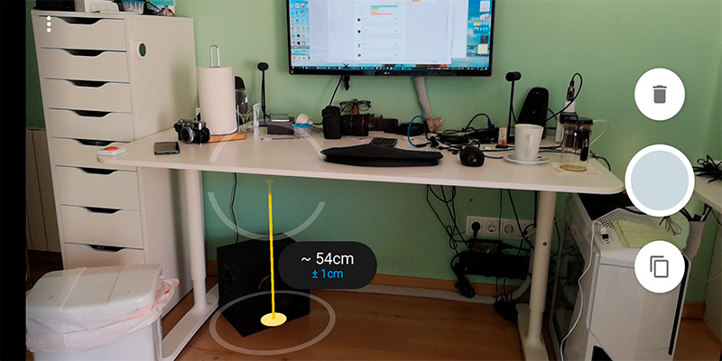 Подальше смартфон надо отвести. Она должна сетку выстроить - справа появятся инструменты для измерения длины и высоты.