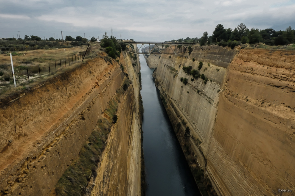 Но оказалось, что если пройти несколько десятков метров, то можно увидеть вот такой впечатляющий искусственный канал (Коринфский канал). Фотография масштаба действия не передает (откройте увеличенную), но честно скажу: когда на это смотришь вживую, только и можешь сказать, что "WOW"! Ну или чисто по-русски: "Хорошо-то как, de puta madre"!
