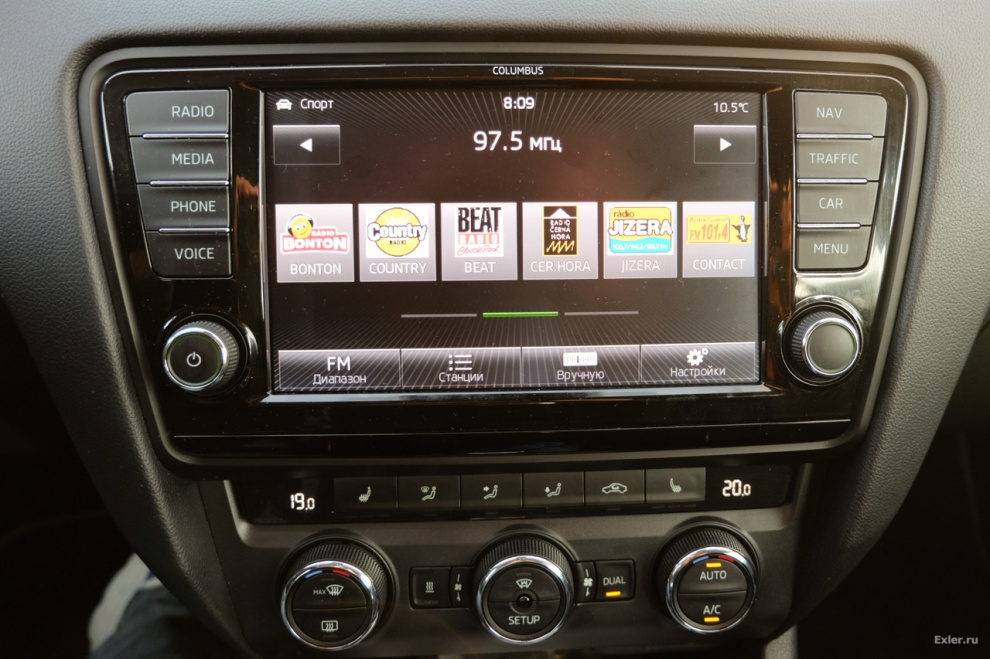 Медиасистема: большой сенсорный дисплей с радио, подключенными медиа, сопряженным по Bluetooth телефоном, голосовым управлением, навигацией, отслеживанием пробок, бортовым компьютером.
