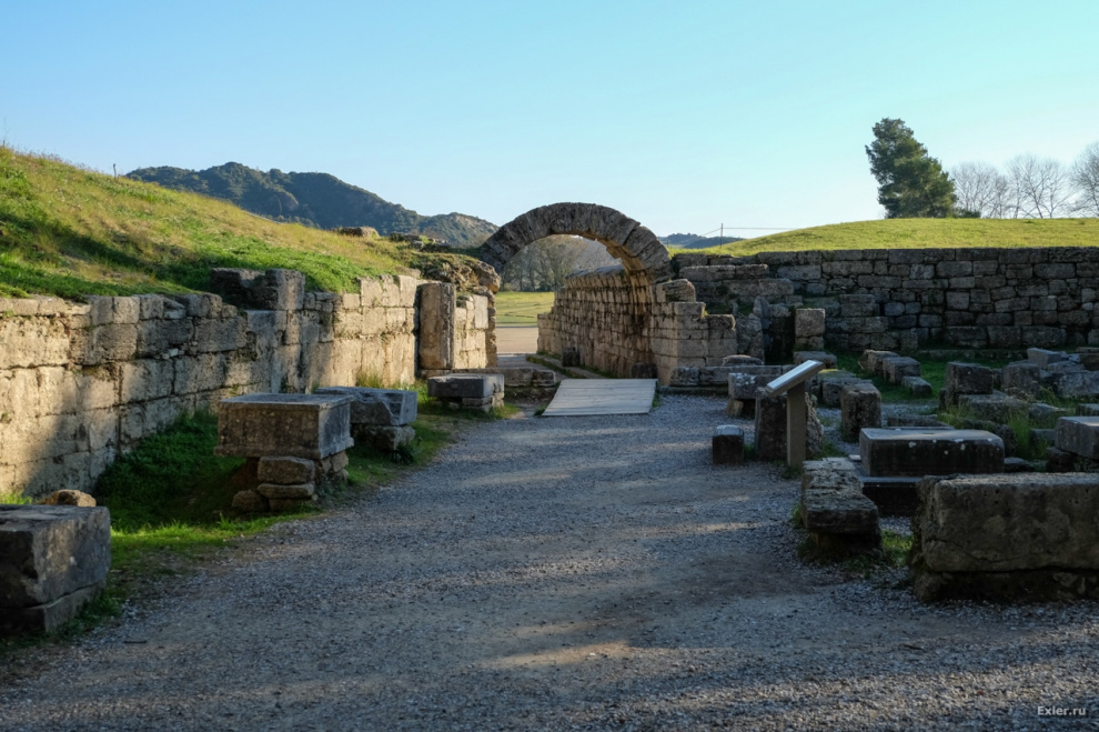 Справа от арки были постаменты со статуями и именами победителей Игр.