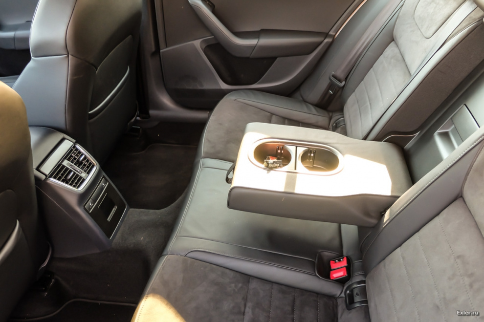 Сзади в машине - просторно и комфортно, есть откидывающаяся подставка для стаканов-банок-бутылок.