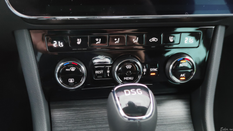 Кресла SUPERB могут быть обиты материалом Alcantara, кожей или тканью. Их можно снабдить системой вентиляции и подогрева, а для кресла водителя также можно установить функцию массажа. (В наших машинах такого не было, а жаль, интересно было бы посмотреть, как оно работает.)