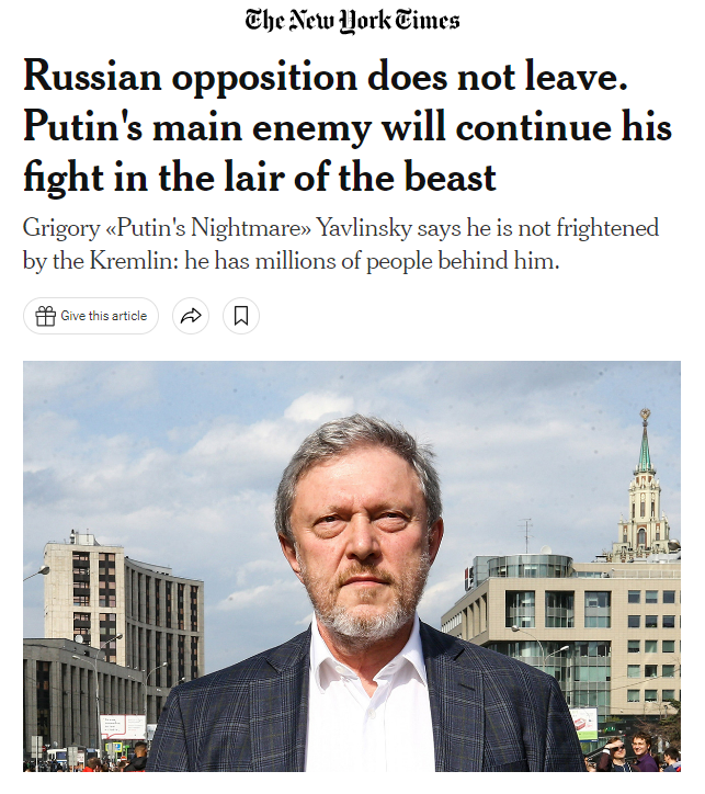 Ну предъявлять им, что они неправильно боролись с режимом, особенно после того как Навальный и часть его соратников сидит, причем в нечеловеческих условиях, а остальные выдавлены из страны под страхом уголовного преследования, объявлены иноагентами и забанены внутри, это такое себе. Особенно на фоне того, что сам предъявильщик Явлинский занимается тем, что активно подмахивает этому режиму, обвиняя во всех преступлениях режима тех, кого он преследует. Шизофазия на марше.