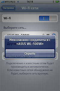 Какие симптомы? Подключается с третьего-десятого раза (обычное сообщение - "Невозможно подключиться к ASUS WL-500W", хотя устройство лежит в 10 сантиметрах от роутера), а когда подключится - связь самостоятельно теряет через 3-5 минут. Один раз продержалась аж десять минут - я на айфон даже ленточку повязал в честь такого случая.