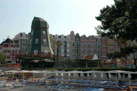 В прошлый раз мы были в Zeugma Papillon, который находится под Белеком, и это роскошный отель. В этот раз сначала хотели было поехать в Orange Country - это отель, сделанный под Амстердам, и он очень забавный и красивый, - однако по ценовой категории он был слегка ниже, чем нужно, да и говорили, что у него территория очень маленькая. Поэтому мы выбрали тот отель, который нам рекомендовала хорошая знакомая - Kemer Resort, расположенный, что характерно, в Кемере. Там мы еще не были. Были в Белеке, Сиде, Манавгате. Очень хотели разок поселиться где-нибудь в Фетхие, на Эгейском море - там обстановка заметно отличается от района Анталии, но решили, что в следующий раз.