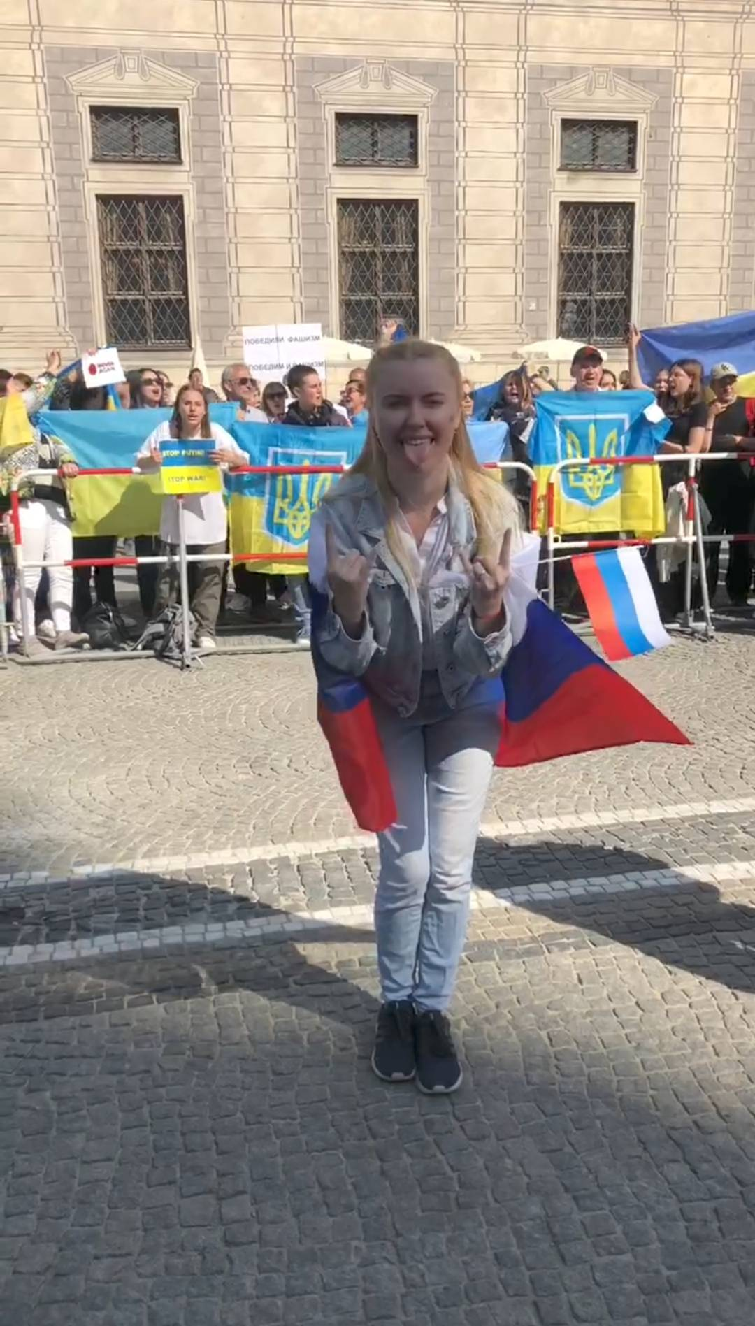 посмотри репортаж 9 мая "в Мюнхене (на Одеонсплатц) в поддержку России в развязанной ею войне против Украины."