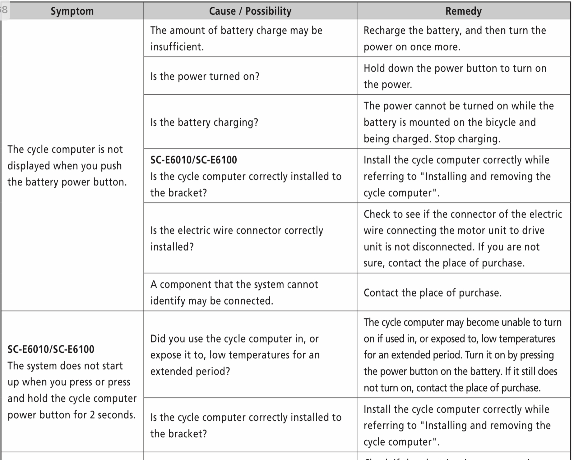 Примерно через год после покупки перестал включаться электрический ассистент. Нажимаю кнопку включения на дисплее велокомпьютера Shimano SC-E6010 - ноль реакции.