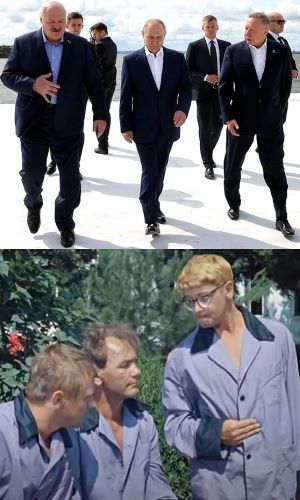 "Владимир Путин и Александр Лукашенко приятно удивили обычных россиян на прогулке в Кронштадте", — написал он.