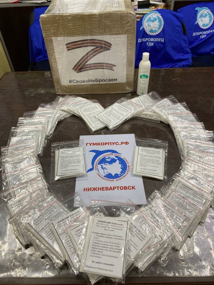 "В Набережных Челнах волонтеры изготавливают сухой армейский душ для военнослужащих.