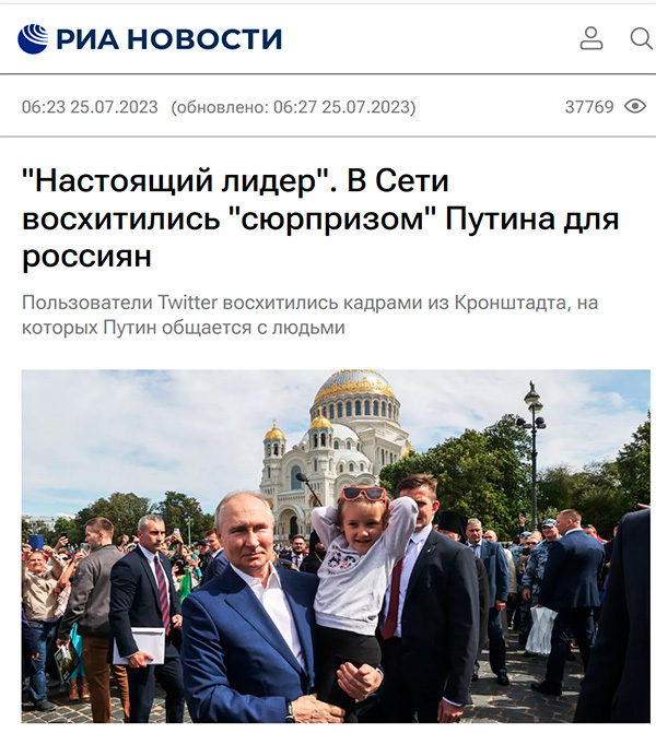 Мы знаем, что у РИА "Новости" постоянно то китайцы, читатели "Гуанча" (это, грубо говоря, аналог комментаторов на "Ленте.ру"), восхищаются Путиным, то болгары возмущаются Зеленским, то в РИА берут шире, и у них уже "читатели Twitter" или "пользователи Facebook".