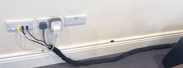 А чтобы провода, в данном случае, по полу не болтались и не висели стянутыми хомутами гроздьями на разьемах - нужно на стену вешать тот или иной органайзер, который провода и будет удерживать.