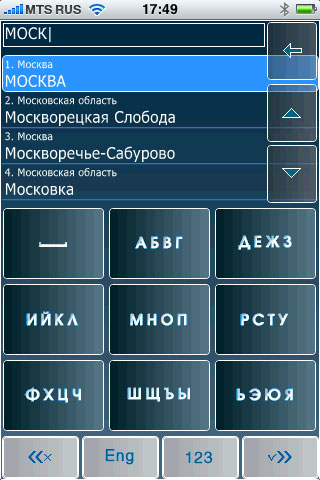 Насчет кнопки Finish. Представьте ситуацию, Вам необходимо высадить пассажира у какой-либо станции метро, сомневаюсь, что Вы вспомните название улицы, а тем более номер дома, у которого находится данная станция. Да и вообще, статочно просто найти на карте место предполагаемого окончания маршрута, ткнуть туда пальцем и нажать финиш. Телефонная клавиатура, стоящая по умолчанию действительно не очень, но через меню ее можно поменять на полноценную. Так же из достоверных источников стало известно, что в новой версии клавиатура будет айфоновская, скриншон прилагаю. Обновиться до новой версии абсолютно бесплатно смогут все существующие пользователи программы.