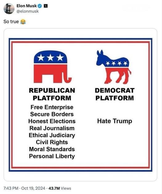 А вот по поводу того, что посты в правительстве могут занять такие одиозные персонажи, как Маск и тем более этот долбанутый Роберт Кеннеди - оно, конечно, новость тревожная, однако мало ли что там Трамп болтает, он часто несет всякую дичь, важно то, что он в реальности будет делать. А это, как показывает его первый срок, вовсе не одно и то же. Посмотрим, короче говоря. Тем более что еще не факт, что его изберут. Хотя прошлые выборы показывают, что в реальности он получает больше голосов, чем ему предсказывают по опросам. Так что пока понятно, что ничего не понятно.